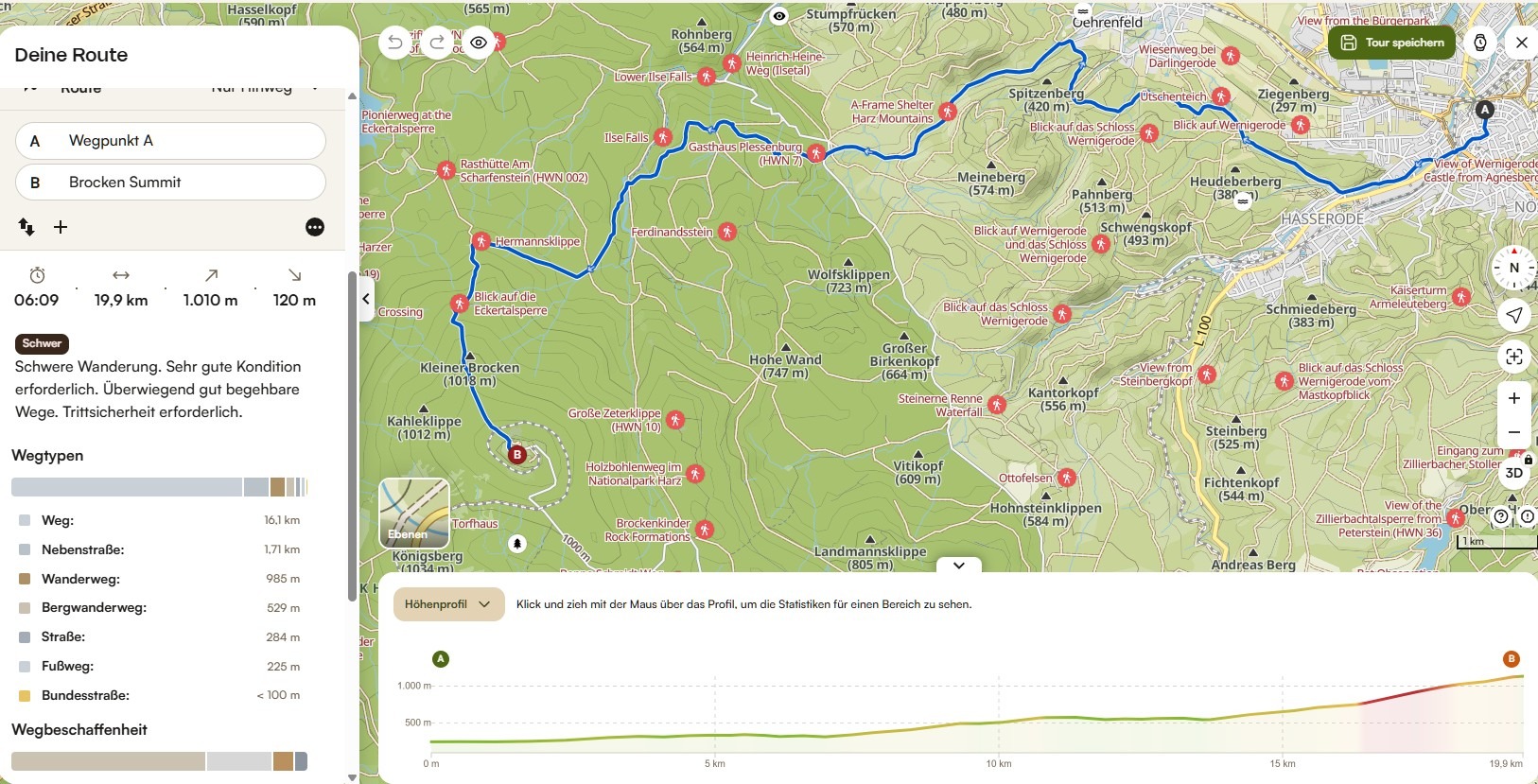 Wanderung direkt von Wernigerode auf den Brocken – 19,9 km, HM: 1.010m