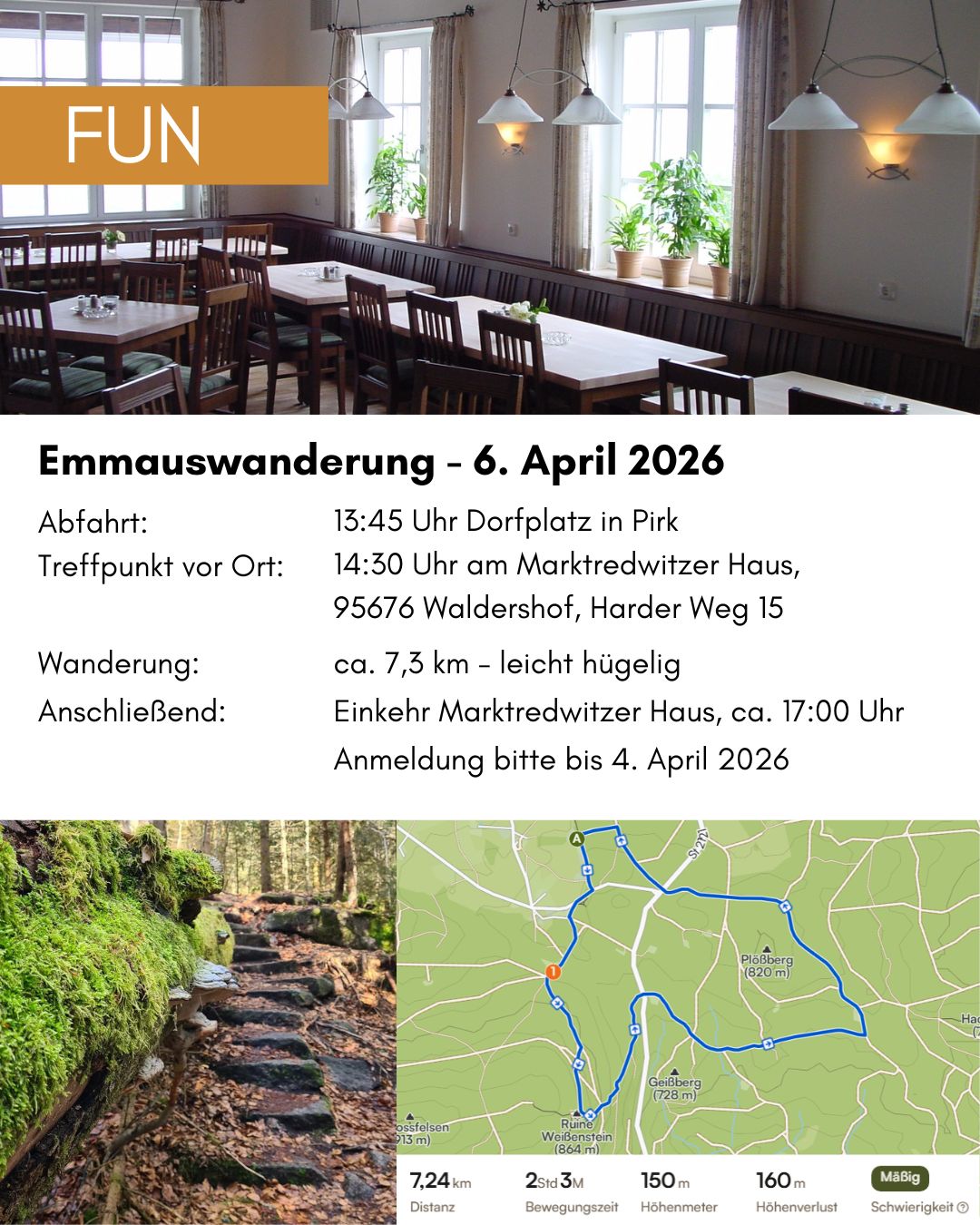 Nachstehend unser erstes Highlight für das Frühjahr 2026, Emmauswanderung. Den Flyer könnt ihr euch auch als PDF herunterladen. Anmeldung hierzu bei Jörg Weiß.